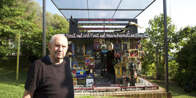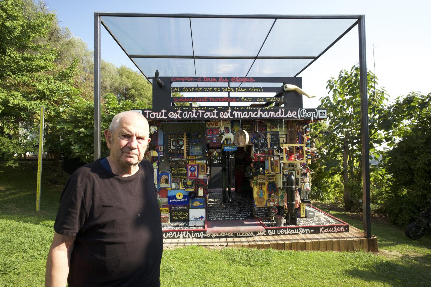 L’idée de Ben était de proposer une gigantesque installation sur le thème de l’invendable. « Mais au fur et à mesure que je cherchais de l’invendable, explique-t-il, je me rendais compte que la machine à broyer de la société pouvait tout avaler et tout vendre. Je l’appelais donc « tout est marchandise car tout est art, pas moyen de fuir »