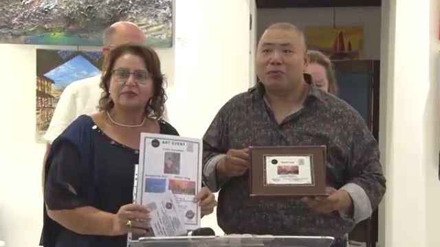 巴黎复兴协会的唐恽鉎 Michel Tong 伴随 法国-荷兰艺术家 Lydia Canclaux 应邀前往参加展览。上面是西西里 GLOBUS 电视台采访视频